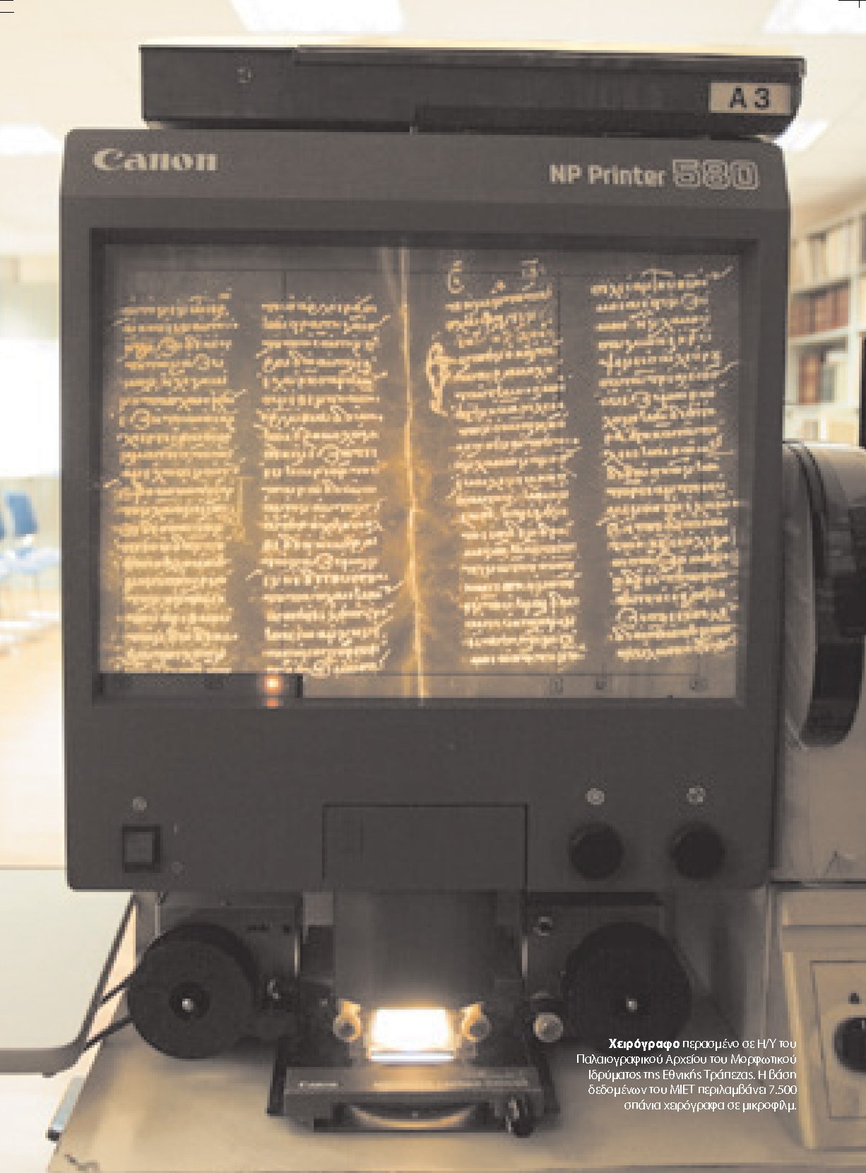 Χειρόγραφο περασμένο σε Η/Υ του Παλαιογραφικού Αρχείου του Μορφωτικού Ιδρύματος Εθνικής Τράπεζας. Η βάση δεδομένων του ΜΙΕΤ περιλαμβάνει 7.500 σπάνια χειρόγραφα σε μικροφίλμ