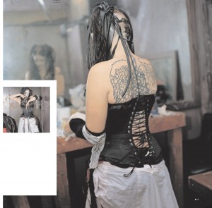 Προς το παρόν, το «τέρας» προετοιμάζεται στα καμαρίνια. Ανεπιτυχώς, προσπαθώ να μαντέψω ποια από τις δυο μικροκαμωμένες, νευρώδεις Ασιάτισσες είναι η σταρ της βραδιάς. Δεν βλέπω κανένα… τέρας ανάμεσα στις παγιέτες, τα μποά και τις περούκες που είναι σκορπισμένα στο μικρό δωμάτιο. Οι γυναίκες γδύνονται, δοκιμάζουν ρούχα, μακιγιάρονται και αστειεύονται μεταξύ τους, εντελώς άνετες με τα γυμνά τους σώματα που ο φωτογράφος απαθανατίζει. «Εχεις ξαναδεί bondage;» ρωτάει μία από αυτές. Εδώ δεν ξέρω καλά καλά τι είναι…