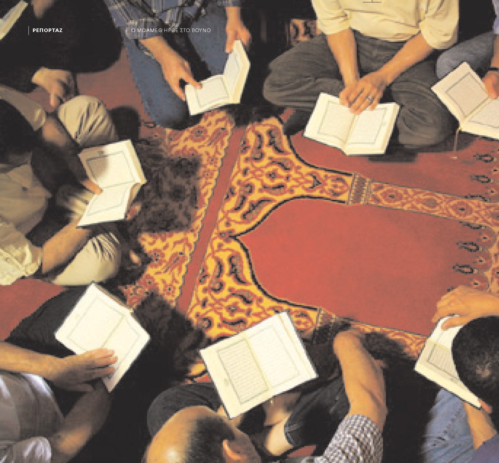 Καθόμαστε ξυπόλητοι, οκλαδόν, σε μια γωνιά του χώρου: κανένας δεν αποκαλεί «τζαμί» το χώρο προσευχής που εγκαινιάστηκε πριν από λίγον καιρό, παρουσία και ορθόδοξου παπά. Αν το πούμε «τζαμί» θα αρχίσουν πάλι διπλωματικά επεισόδια. Το λέμε «χώρο προσευχής» και ξεμπερδεύουμε.