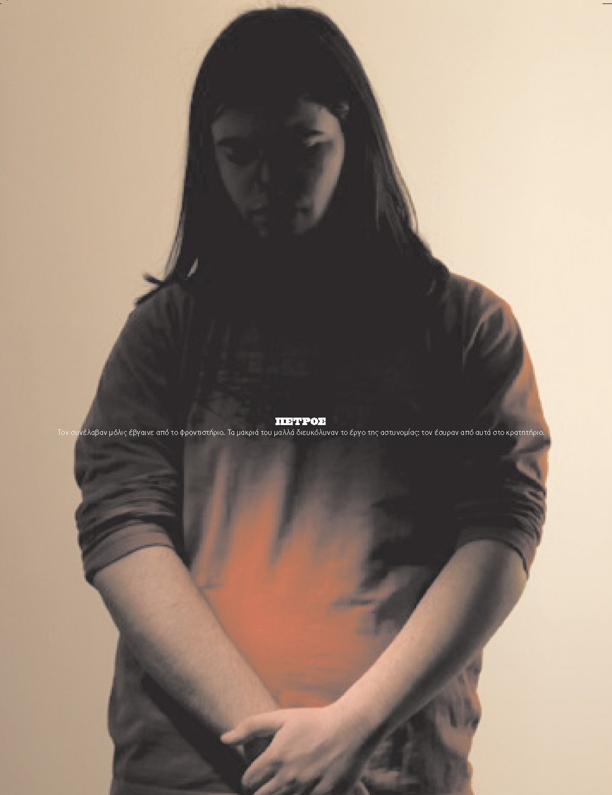 ΠΕΤΡΟΣ Τον συνέλαβαν μόλις έβγαινε από το φροντιστήριο. Τα μακριά του μαλλά διευκόλυναν το έργο της αστυνομίας: τον έσυραν από αυτά στο κρατητήριο.