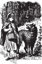 Παρ’ όλα αυτά, μακράν το πιο αγαπημένο μου παραμένει ένα παιδικό παραμύθι. Αυτό για το κορίτσι που παίρνει το καλαθάκι του και διασχίζει ένα ολόκληρο δάσος για να πάει στη γιαγιά. Παλιότερα είχα κάποιες ενστάσεις φεμινιστικού τύπου, μεγαλώνοντας ωστόσο δεν βρίσκω τίποτα το αρνητικό στον ωραίο, μπρατσωμένο κυνηγό που έρχεται από το πουθενά να σε σώσει. Η Κοκκινοσκουφίτσα είναι μια χαρά κορίτσι, ντυμένο στα κατακόκκινα (και στην τσόντα βέρσιον που την έχω δει με κόκκινο κορσέ και δωδεκάποντα), δεν γκρινιάζει, δεν μυξοκλαίει, παίρνει το καλαθάκι της και προχωρά στο σκοτεινό δάσος. Όταν συναντά τον λύκο, αντί να της κοπούν τα πόδια, τον πλακώνει στις ερωτήσεις: Γιατί έχεις τόσο μεγάλα αφτιά; Γιατί τόσο μεγάλη μύτη; Δηλαδή, η χαρά της περιέργειας –και της ζωής– προσωποποιημένη. Μετά έρχεται η μοιραία ερώτηση για το μεγάλο στόμα κι ανακαλύπτει από πρώτο χέρι σε τι χρησιμεύει.