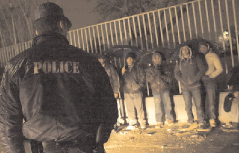 «Δεν παίζει ρόλο αυτό. Δεν τηρείται κάποια σειρά προτεραιότητας» θα μας πει ο Θανάσης Κούρκουλας, εκπρόσωπος του Κυριακάτικου Σχολείου Μεταναστών. «Στις 7 π.μ. κάθε Σάββατο οι αστυνομικοί “κόβουν φάτσες” και με κάποια αδιευκρίνιστα κριτήρια “πορτιέρη” εφοδιάζουν με χαρτάκια κάποιους από τις ουρές – όχι κατ’ ανάγκη τους πρώτους κάθε φορά». Οπότε, οι άνθρωποι ρίχνουν τη ζαριά τους και περιμένουν. «Κατά τη διάρκεια της νύχτας οι αστυνομικοί χτυπούν με κλομπ και κυνηγούν τους πρόσφυγες, προκειμένου να διαλύσουν και να απωθήσουν τις ουρές, οδηγούν τα περιπολικά τους καταπάνω τους, τους βρίζουν και τους εξευτελίζουν, δημιουργούν συνθήκες πανικού».