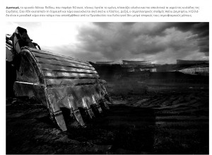 Λίγο αργότερα, λίγα χιλιόμετρα πιο πέρα, νανουρίζω στην αγκαλιά μου την Κασσιανή. Η Δέσποινα, η μαμά της, μου δείχνει από το μπαλκόνι τα γειτονικά σπίτια: «κάθε σπίτι κι ένας νεκρός γύρω μας. Δέκα άνθρωποι νεκροί από καρκίνο. Δεν απλώνω τα ρούχα μου έξω και τα βάζω σε στεγνωτήριο. Δεν ανοίγω τα παράθυρα για να αερίσω και είμαστε συνέχεια με το ερ κοντίσιον και τον ιονιστή. Όταν γεννήθηκε το παιδί μου αποφάσισα πως θα φύγουμε. Κι ας χάσω το σπίτι μου εδώ, που είναι 150 τετραγωνικά, κι ας χάσω και το μαγαζί. Αυτόν τον εφιάλτη που ζει το μωρό δεν τον αντέχω».