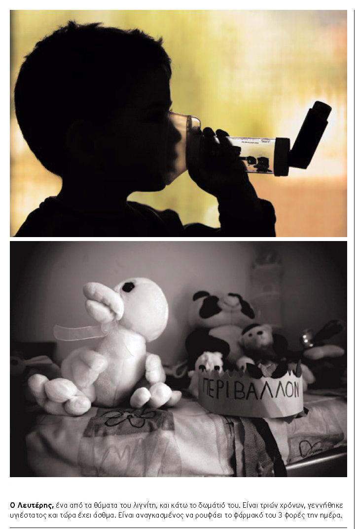 Ανάμεσα σε βουνά από τέφρα και δίπλα σε φουγάρα που φτάνουν τα 400 μέτρα, είχε την ατυχία να γεννηθεί η Ευτυχία. Είναι πολύ μικρή ακόμα για να μιλάει ή να περπατάει. Μπορεί όμως να πιάνει με τα χεράκια της τη μάσκα οξυγόνου και να τη φέρνει στο στόμα της. Και ρουφάει αχόρταγα το φάρμακο που ανοίγει τους πνεύμονές της. Είναι 6 μηνών, το νεότερο θύμα του λιγνίτη.